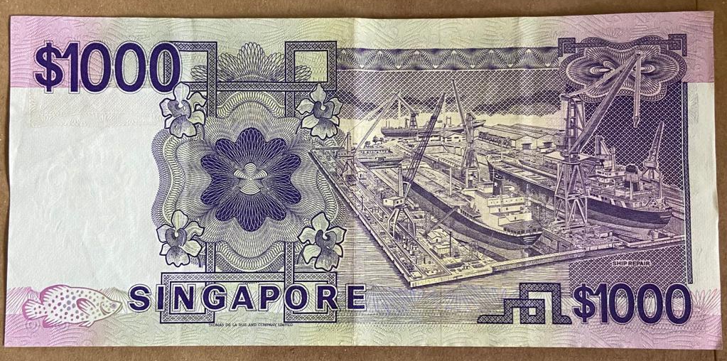 A piece of Singapore Ship Series $1000 bearing the signatory of Mr. Richard Hu is up for sale, this note is very well preserve to Extra Fine condition in my opinion. This piece is moderately circulated, with folds and some minor stains. The paper is strong and crispy.
